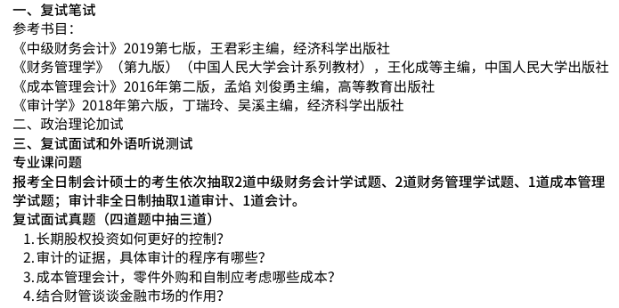 某双一流财经大学MPAcc复试形式与真题