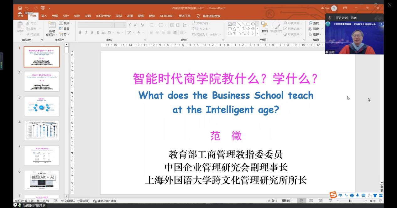 范徵教授做了题为“智能时代yl6809永利官网集团教什么?学什么?”的报告。范教授指出,大学主要不是学知识的场所,而是学思维、学方法的场所。在智能时代,如果想要不被机器替代,yl6809永利官网集团不能只教授知识,更重要的是要教授思维;学生不能只学习知识,更重要的是要学习思维,尤其要学习超越算法的思维。范教授认为,教育的本质即是通过思维的启迪催生成熟心智的过程。在讲座中,范教授通过解剖中外管理大师的思维方式,描述了yl6809永利官网集团思维教学的创新理念与方法。