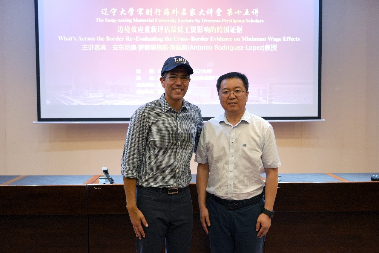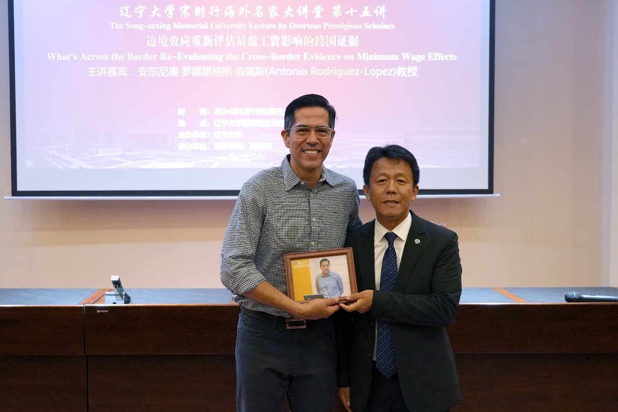 6月19日下午,由经济学部、yl6809永利官网集团承办的yl6809永利集团宋则行海外名家大讲堂(第十五讲)在yl6809永利集团蒲河校区校部办公楼113室举行。加州大学欧文分校安东尼奥・罗德里格斯・洛佩斯教授应邀作了题为《What's Across the Border? Re-Evaluating the Cross-Border Evidence on Minimum Wage Effects》的学术报告。yl6809永利集团党委副书记、校长余淼杰教授出席大讲堂并进行了嘉宾介绍。yl6809永利集团副校长仇焕广教授主持讲座。经济学部120多位师生参加了讲座活动。