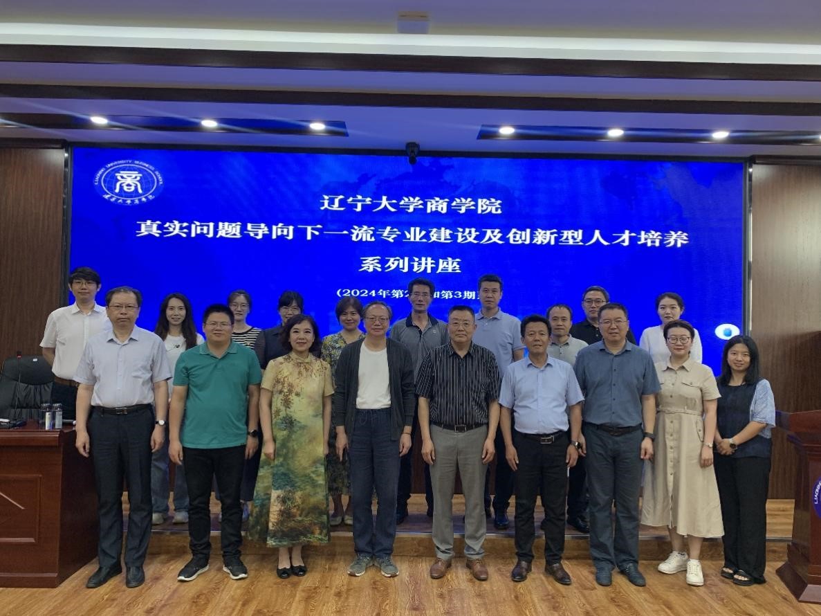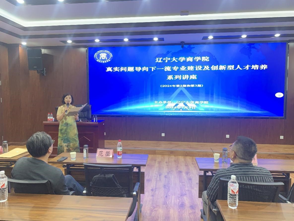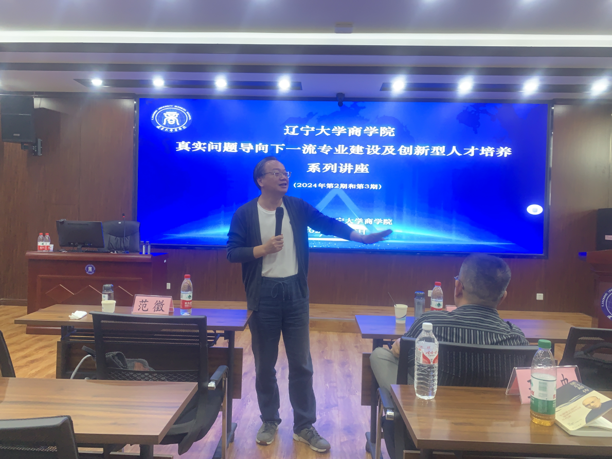 2024年7月9日下午,由yl6809永利官网集团主办的“真实问题导向下一流专业建设及创新型人才培养”系列讲座(2024年第2期和第3期),在蒲河校区励行楼402举行。本次讲座邀请了中央财经大学孙国辉教授和上海外国语大学范徵教授担任主讲人,分别开展主题为“一流专业建设进展中的问题再思考”和“智能时代yl6809永利官网集团教什么?学什么?”的讲座。yl6809永利官网集团李玉华书记、副院长韩亮亮教授、副院长徐业坤教授、各专业教学和科研系主任、系主任助理、基层教学组织(研究中心、教学团队等)负责人以及专任骨干教师等参加了讲座。讲座由yl6809永利官网集团副院长张广宁教授主持。