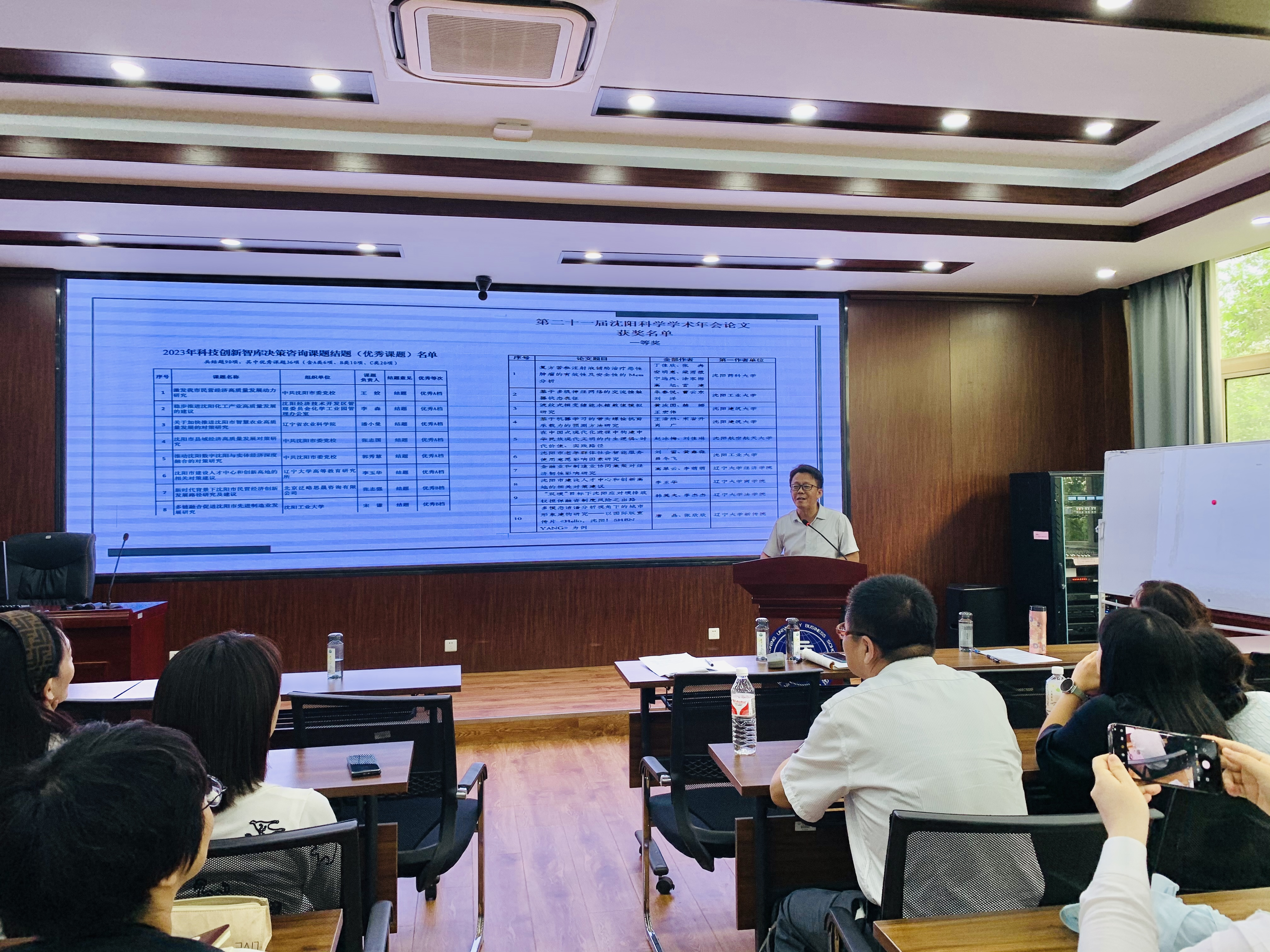 近日,yl6809永利官网集团在蒲河校区励行楼401会议室举办第二十一届沈阳科学学术年会优秀论文宣讲会。宣讲论文题目为“沈阳市建设人才中心和创新高地的相关对策建议”,该论文在第二十一届沈阳科学学术年会论文评选中获评优秀论文一等奖。根据沈阳市科学技术协会及沈阳市社科联的要求,获奖作品需要进行学术宣讲。