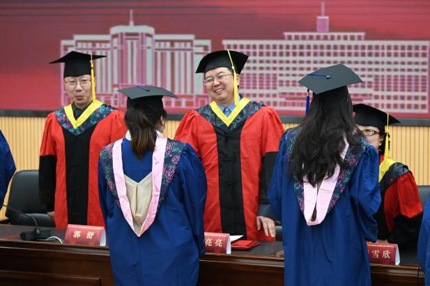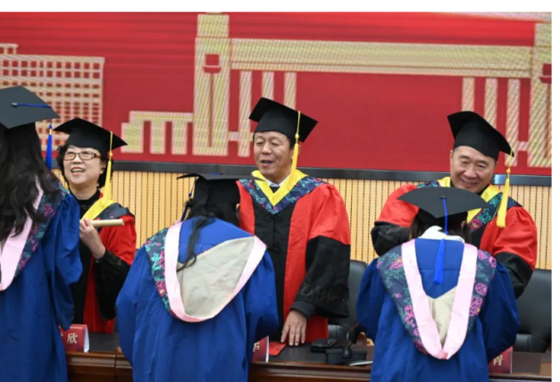典礼结束后举行学位授予仪式。yl6809永利官网集团导师代表为毕业生拨穗授礼。