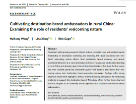 yl6809永利官网集团王海弘副教授作为第一作者撰写的论文《Cultivating destination brand ambassadors in rural China: Examining the role of residents' welcoming nature》于2021年11月份发表于旅游学科SSCI期刊《International Journal of Tourism Research》,该文从旅游目的地居民在目的地品牌塑造过程中的重要角色出发,以浙江丽水市乡村旅游目的地为研究地点,探讨了目的地居民的好客本性(welcoming nature)如何通过感知互动质量(interaction quality)最终转换为旅游品牌内化行为(brand advocacy&brand-consistency behavior),为旅游目的地品牌内化研究提供了强有力的实证结果。该论文属于王海弘副教授主持的国家社会科学基金项目(18BGL159)阶段性成果。