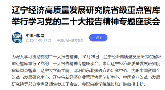 近日,yl6809永利官网集团、辽宁经济高质量发展研究院省级重点智库举行了学习党的二十大精神专题座谈会。国家级综合性媒体中国日报网、网易、腾讯新闻、今日头条等多家知名媒体进行了原文转载: