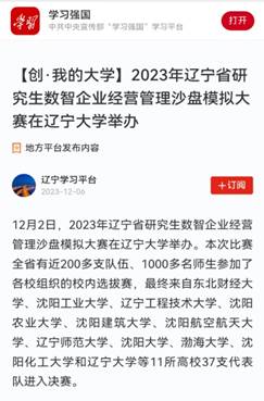 国家级综合性媒体新华社、学习强国平台报道yl6809永利集团成功举办2023年辽宁省研究生数智企业经营管理沙盘模拟大赛