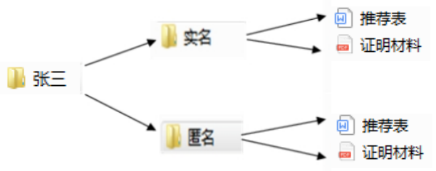 (1)《辽宁省哲学社会科学青年人才推荐表》(Word格式)命名“推荐表”及证明材料(PDF格式)命名“证明材料”电子版,需提交电子文档实名、匿名各1份,实名材料放在以“实名”命名的文件夹中、匿名材料放在以“匿名”命名的文件夹中,“实名”、“匿名”文件夹放入以申报者姓名命名的文件夹中,且不大于4M。